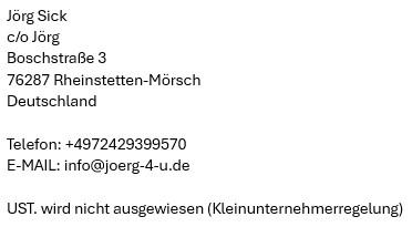 Karlsruhe, Deutschland, Tel.: +49721816738, E-Mail: joerg-sick@joerg-4-u.de. Der